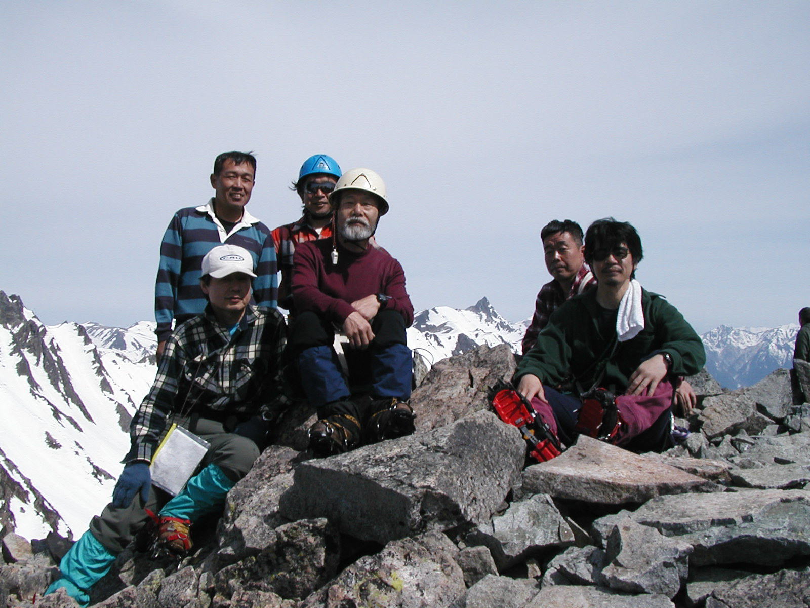 3時起床、4時半出発の予定が、目がさめると3時半をまわっていた。出発は5時過ぎ。前日、5峰の手前にテントを張っていたパーティに、いきなり先を越される。3峰のピークは迂回し、2峰に登る。2峰からの懸垂下降で前のパーティの女性がケガをしたので、しばらく停滞。借り物のロープにプルージックをとってクライミングダウン中、一抱えほどの大きさの岩を持ったまま墜落してしまう。落石は2m下の坂地さんに当たったが、ケガがなく一安心。奥明神沢のコルに荷物をおいて前穂をピストン。岳沢ヒュッテまでは、ひたすら雪渓の下りで、膝がガクガクになる。ヒュッテの生ビールの誘惑を振り切り、一気に上高地まで降りる。前日デポした食料を回収し、温泉に入り、キャンプ場で宴会。